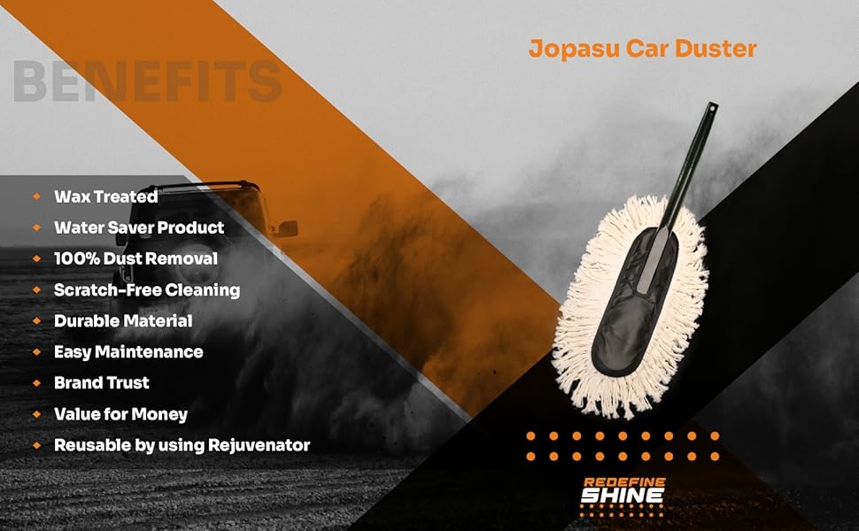 Waterless Cleaning Made Easy: Jopasu Car Duster Brush with Wax-Treated Strands | Buy On Amazon