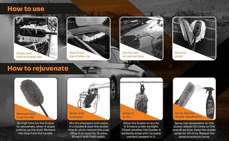 Waterless Cleaning Made Easy: Jopasu Car Duster Brush with Wax-Treated Strands | Learn More