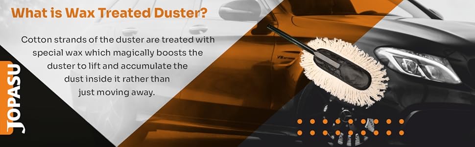 Forget the hassle of buckets, sponges, and drying towels. The Jopasu Car Duster Brush requires no water or cleaning solutions, making it an eco-friendly and time-saving option. Simply glide the brush over your vehicle’s surface, and watch as it picks up dust effortlessly. - Wax-Treated Cotton Strands for Superior Performance: